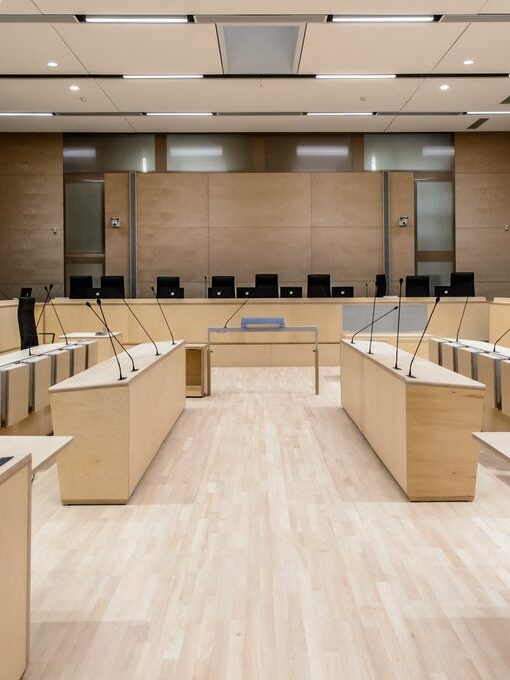 Si ces salles respectaient en tous points les normes, elles étaient si mal conçues qu’aucun procès n’auraient jamais pu s’y dérouler : des bancs qui empêchent procureurs et avocats d’utiliser leur ordinateur, un greffier excentré incapable de transmettre des pièces aux parties, une chaise si mal choisie que le Président, empêtré dans sa robe, tombe en pleine audience…